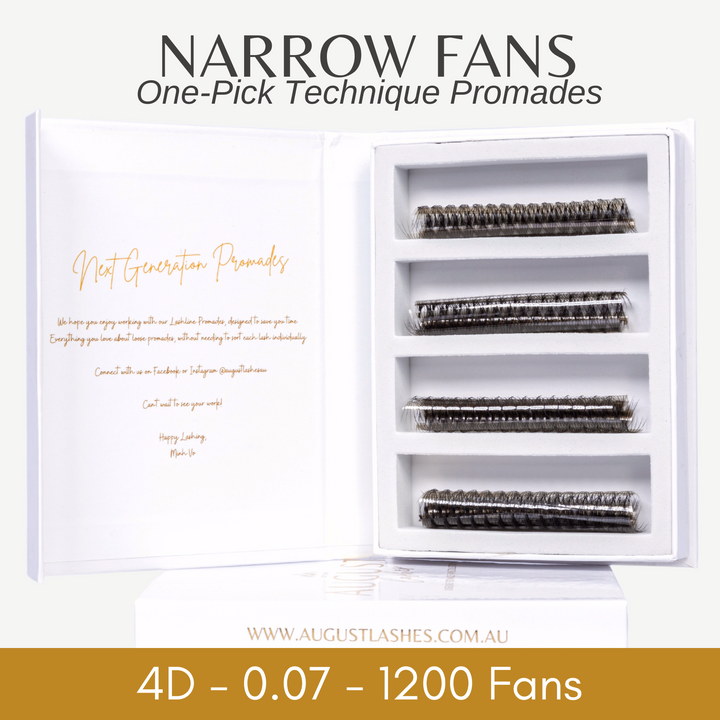 Our latest innovation, our NARROW Promade Fans utilize an efficient One-Pick Technique to help you lash so, so, so much faster